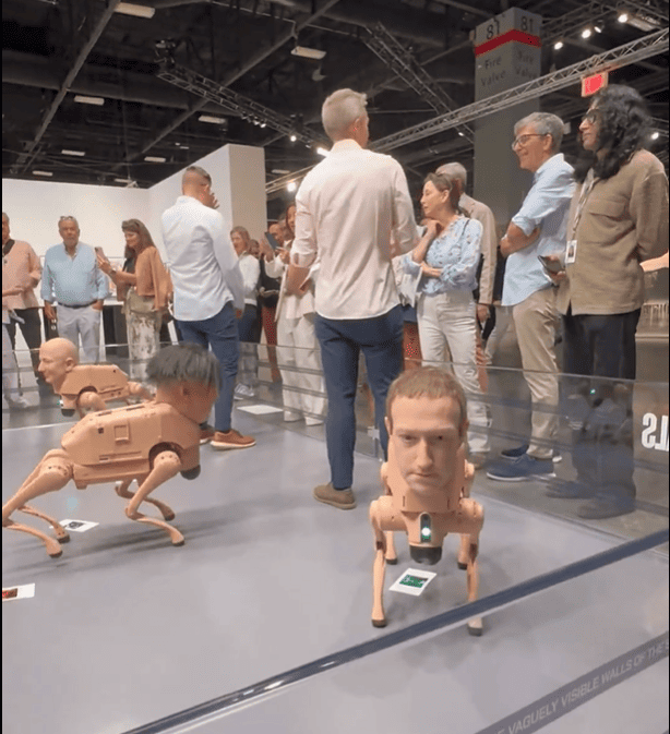 En el ambiente luminoso y saturado de Art Basel Miami, donde cada año convergen fortunas, tendencias y provocaciones estéticas, una instalación terminó convirtiéndose en el epicentro de conversaciones, risas nerviosas y expresiones de desconcierto. Entre los pasillos de la feria, un grupo de robots cuadrúpedos con rostros hiperrealistas de celebridades trota como si pertenecieran a un futuro inquietante del arte digital.