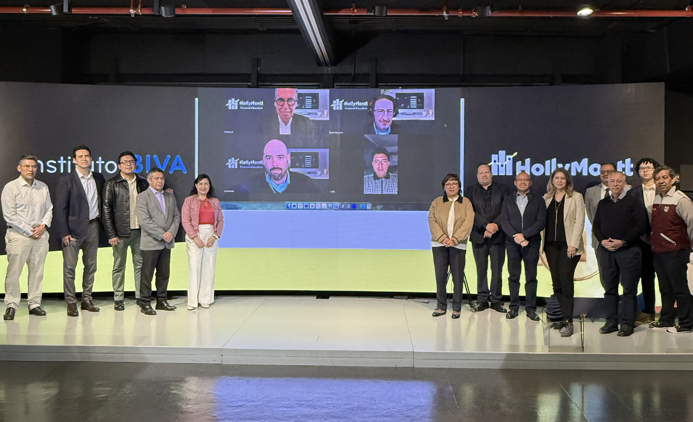 La Bolsa Institucional de Valores (BIVA), a través del Instituto BIVA, anunció un convenio con HollyMontt, firma internacional especializada en tecnología para la gestión de portafolios y análisis cuantitativo, con el objetivo de fortalecer la formación financiera universitaria mediante el uso de herramientas profesionales.